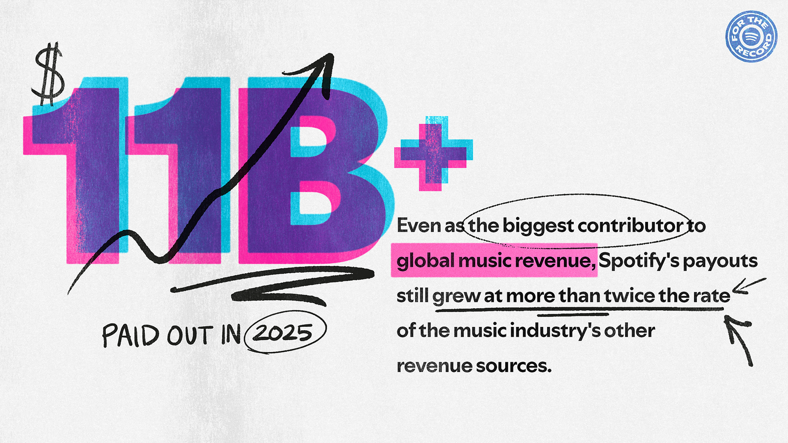 En el post, Charlie anuncia que en 2025 Spotify pagó más de USD $11 mil millones a la industria musical, el mayor pago anual a creadores de música realizado por cualquier retailer, lo que eleva los pagos históricos de Spotify a casi USD $70 mil millones.