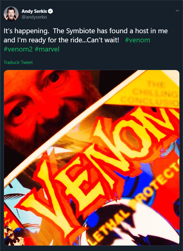Al momento de escribir esta nota, ya es más que un hecho el que Andy Serkis sea el director de la secuela de Venom e incluso ha hecho una publicación en su cuenta de Twitter en la que le anuncia a todos la noticia.