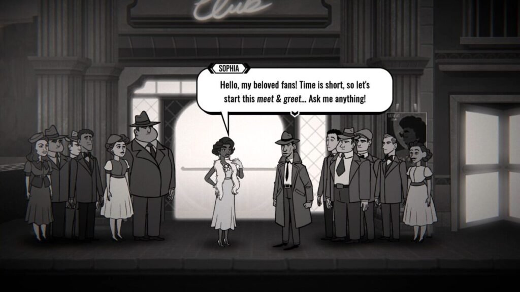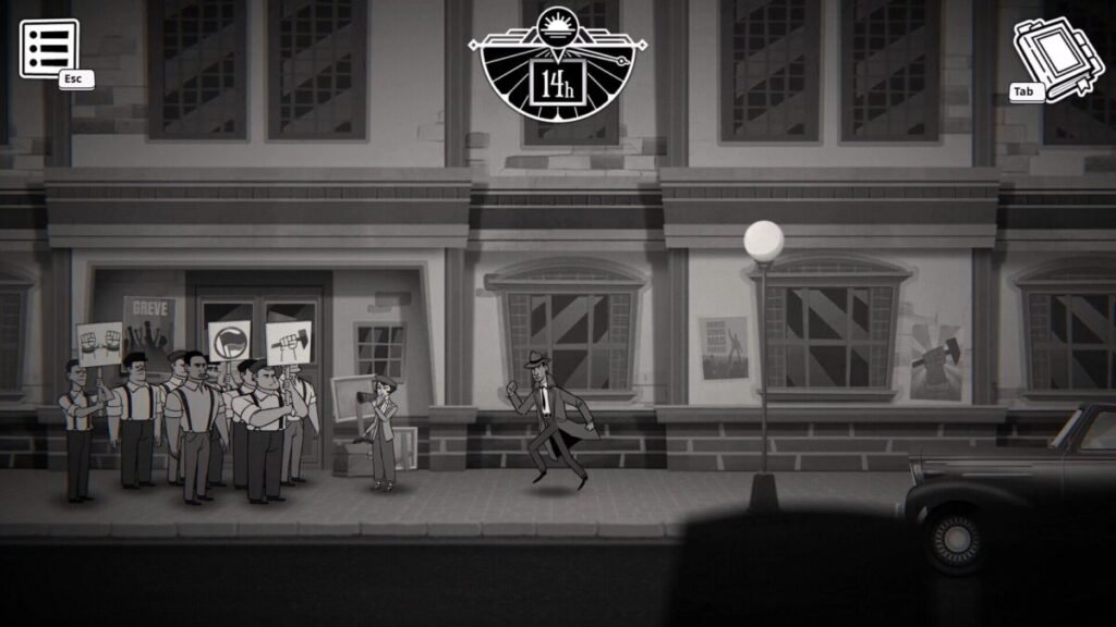 Visualmente el juego es decente. Es un entorno 2D con una estética noir en blanco y negro, con un contraste de sombras que encaja perfecto con la vibra de detectives de los años 30. No es un juego que busque gráficos de última generación, pero, su nivel artístico se apega bastante bien a lo que ofrece el juego.