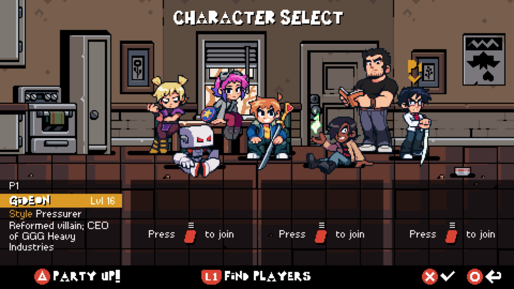 Por ejemplo, Scott es un peleador balanceado, Ramona cuenta con golpes contundentes, Lucas es un tanque, Roxy es un ninja, Gideon tiene poca resistencia pero puede causar bastante daño, el Robot puede luchar media distancia y Matthew tiene poderes mágicos.