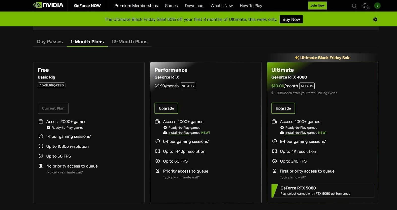 La oferta Ultimate Black Friday Sale es el momento perfecto para cambiarte al máximo rendimiento en la nube, con Blackwell RTX ahora disponible en todo el mundo. Hasta el domingo 30 de noviembre, los tres primeros meses de la suscripción Ultimate tienen un 50 % de descuento.