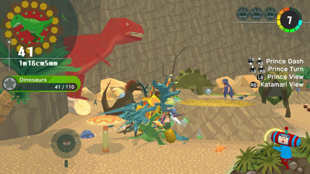 Aquí es donde las cosas se mantienen fieles a la fórmula original. La mecánica sigue siendo la misma, recolectar todo lo que puedas para formar la bola más grande posible dentro del tiempo límite. Lo nuevo llega con minijuegos, desafíos extra y un modo multijugador en línea que agrega bastante rejugabilidad. Competir contra tus amigos o la IA para ver quién hace el katamari más grande es algo que, honestamente es muy divertido.