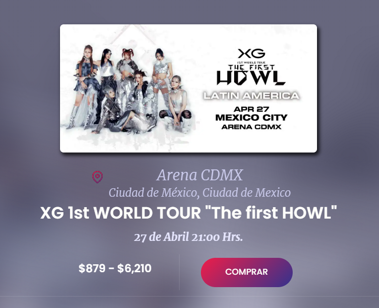 Los precios para el concierto de XG en Arena CDMX el próximo 27 de abril de 2025 son variados y para todos los públicos, ya que puedes encontrar boletos desde $879 pesos y con un precio máximo de $6210 pesos.