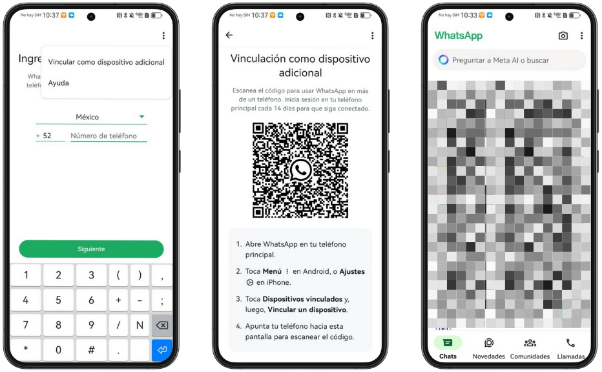 • Espera unos segundos a que se haga la vinculación para que puedas usar WhatsApp.