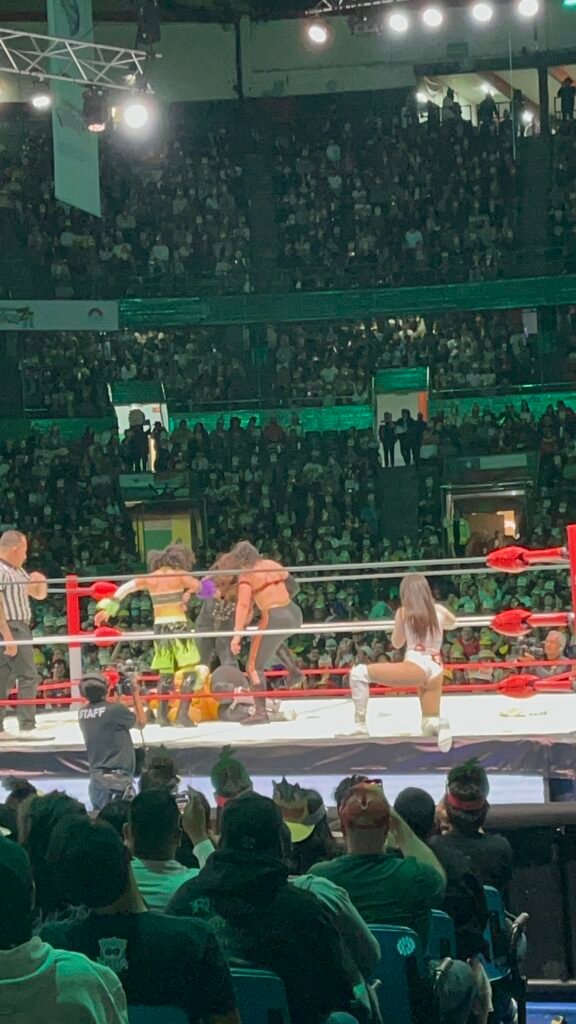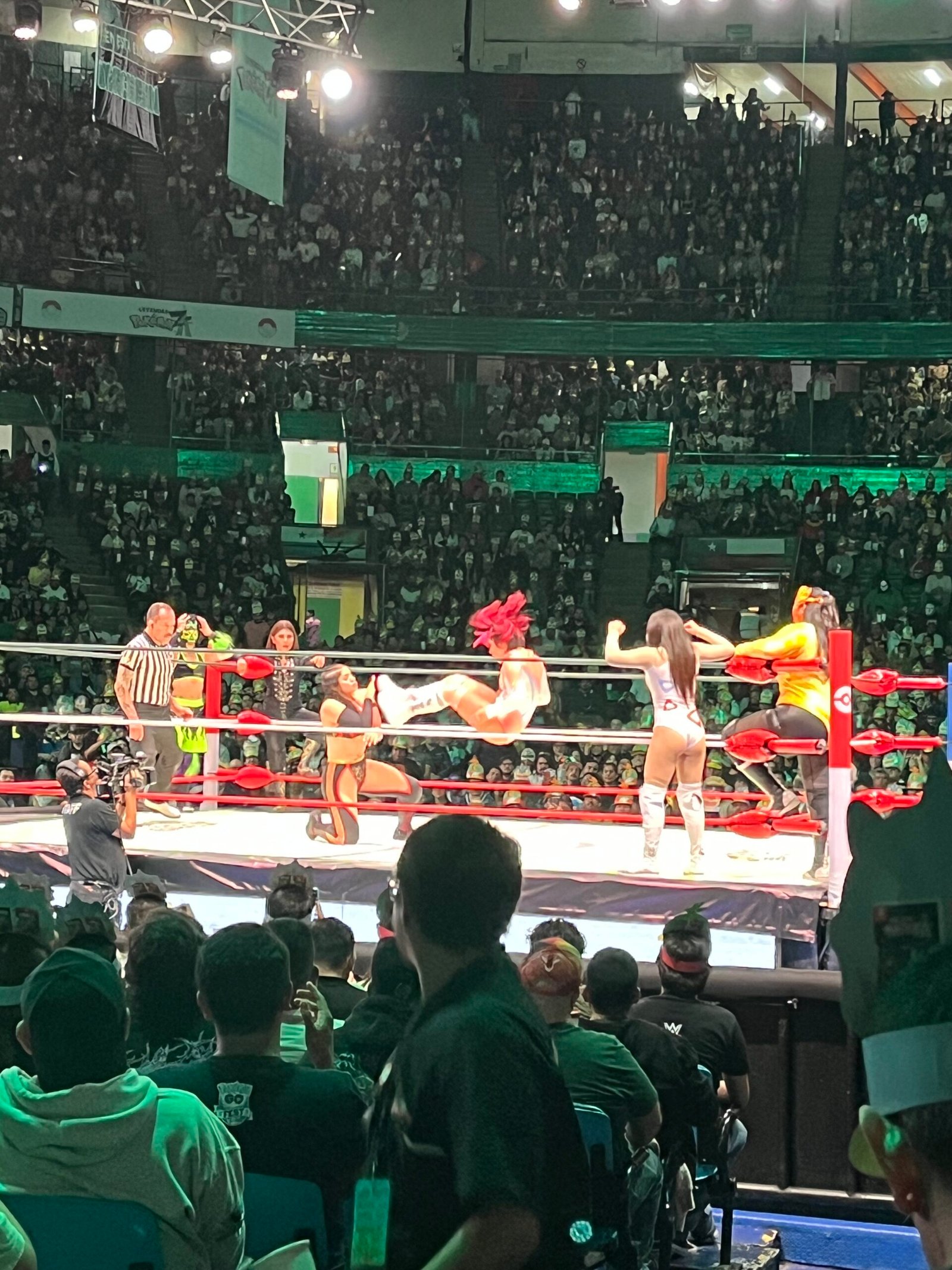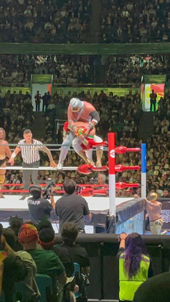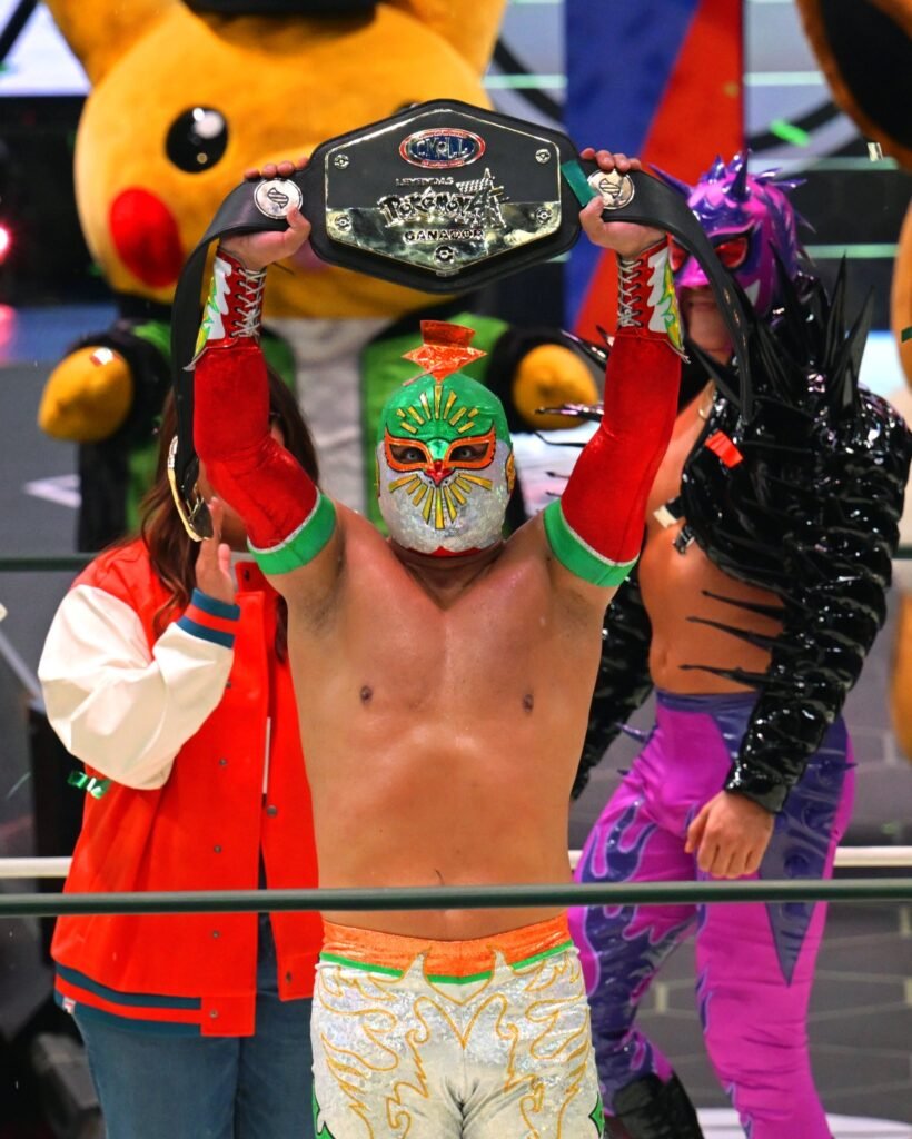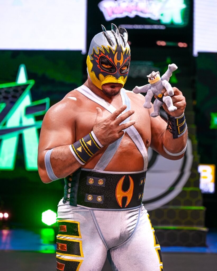 Y por supuesto la colaboración con los mounstros de bolsillo fue épica puesto que en la Lucha Estelar estaba en juego el Cinturón de Leyendas Pokémon Z-A y el fanservice estuvo presente siempre, tanto con un cuadrilátero con temática la próximo juego, como las y los propios luchadores usando sus trajes inspirados en varios Pokémon, destacando: