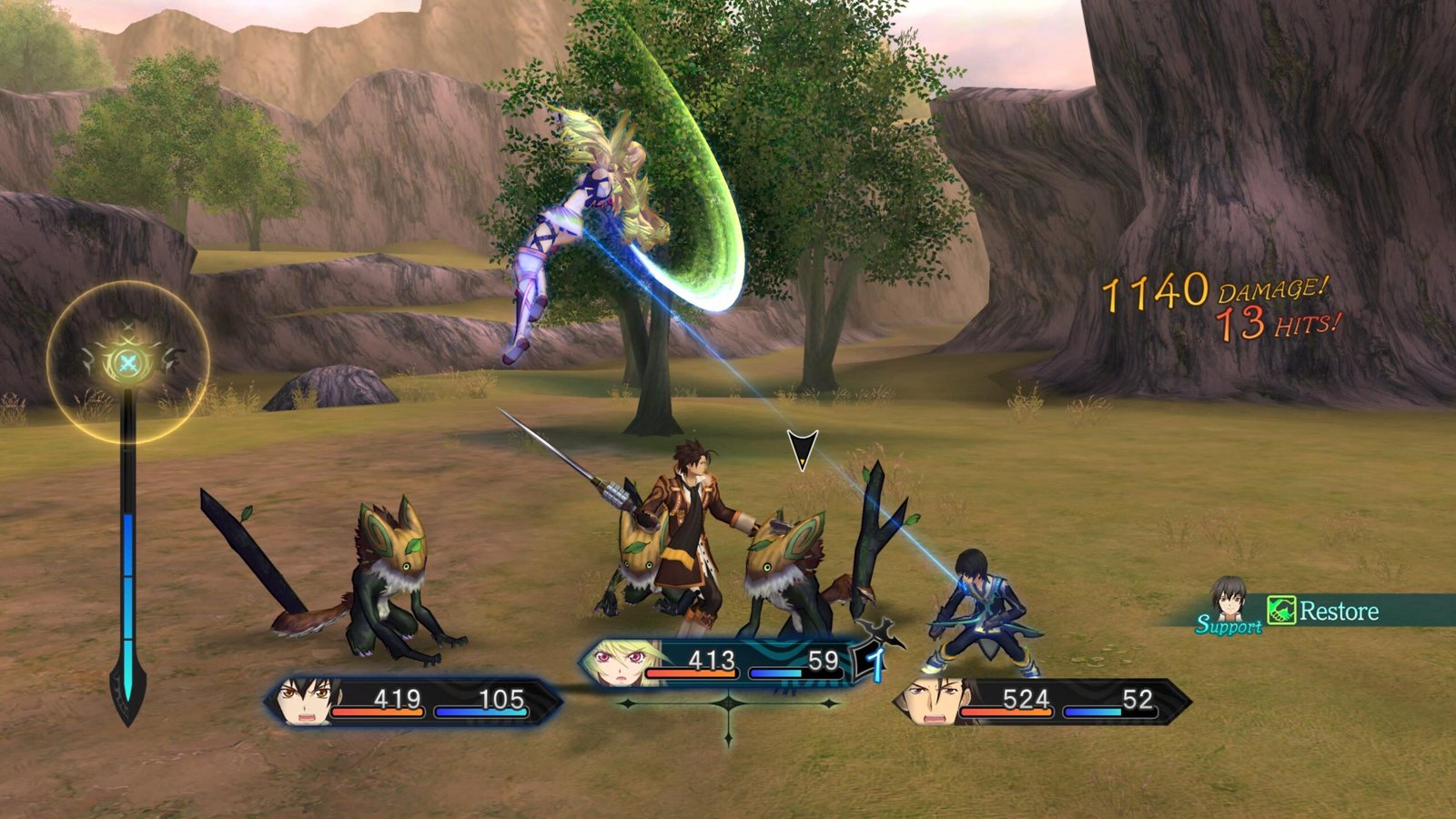 Como mencioné, Tales of Xillia Remastered es una JRPG de acción en el que los combates se llevan a cabo en tiempo real en una zona determinada, controlando a uno de los personajes de nuestra party (en los combates podremos seleccionar a distintos personajes y no solo al protagonista que hayamos elegido al inicio del juego) con el que podremos realizar combos y esquivar ataques; en tanto que los otros miembros son controlados por la IA del juego, no obstante, podemos establecer el tipo de comportamiento en combate que tengan los otros personajes.