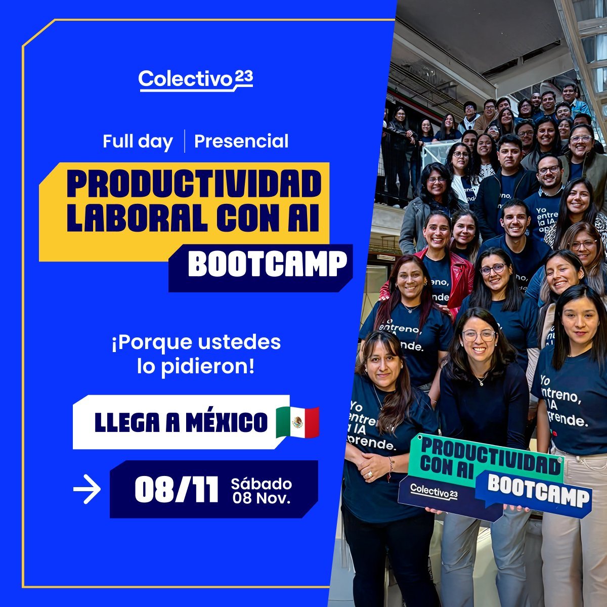 Colectivo23 presenta el bootcamp “Productividad laboral con IA”, que se llevará a cabo el 8 de noviembre en The Room Polanco, coworking ubicado en Calle Homero S/N int 3, Colonia Polanco.