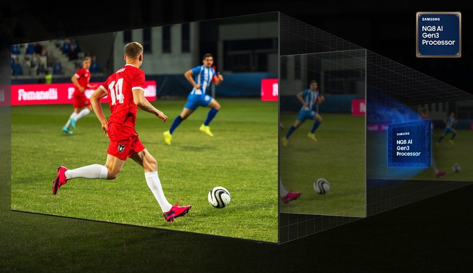 - Gracias a redes neuronales y a los procesadores NQ8/NQ4 AI Gen3 y Gen2, las pantallas de Samsung recrean texturas y detalles, acercando el contenido a la calidad 8K o 4K.