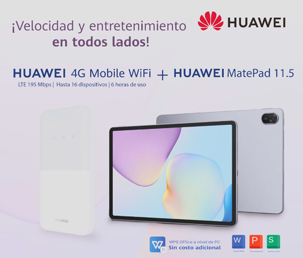 Si ya estás planeando tus vacaciones de fin de año y quieres mantenerte conectado donde sea que vayas, Huawei tiene los equipos ideales para ti: la HUAWEI MatePad 11.5 y el HUAWEI 4G Mobile WiFi, una combinación que lleva el entretenimiento, la productividad y la conectividad a cualquier destino.