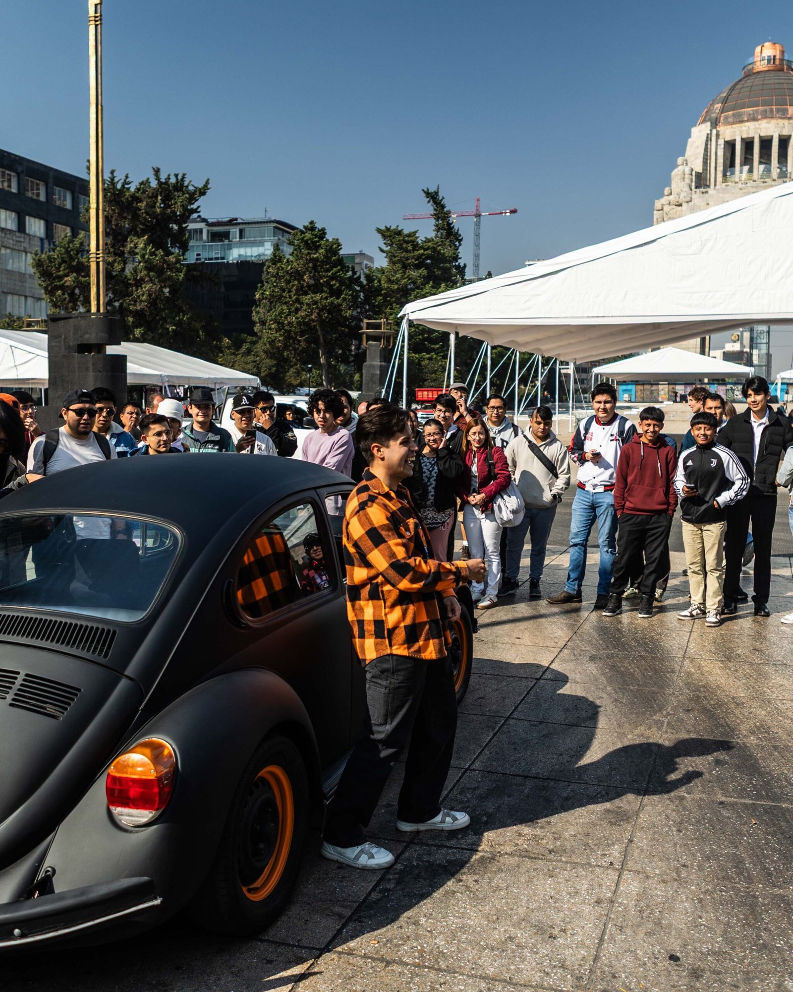 A las 10:00 a.m., en el Monumento a la Revolución, más de 200 asistentes rodearon el auto como si se tratara de una celebridad.
