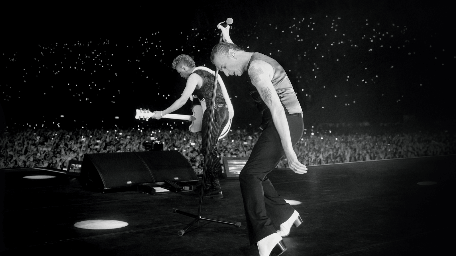 Si eres fanático de la banda, seguro ya tienes tu boleto para esta experiencia cinematográfica porque “simplemente nunca tienes suficiente”, pero si aún lo sigues pensando deja te cuento que más allá de extractos del concierto, excelentemente grabados por el director Fernando Frías, recibirás también una mirada única desde el escenario, con tomas muy cercanas del dúo, los movimientos convulsos de Dave Gahan y la melodiosa voz de Martin Gore, mientras llega el emotivo momento de recordar a Andy Fletcher con el público levantando en el aire su fotografía mientras la pantalla proyecta su rostro al sonar “World in my eyes”, la canción favorita de su ex compañero de banda.
